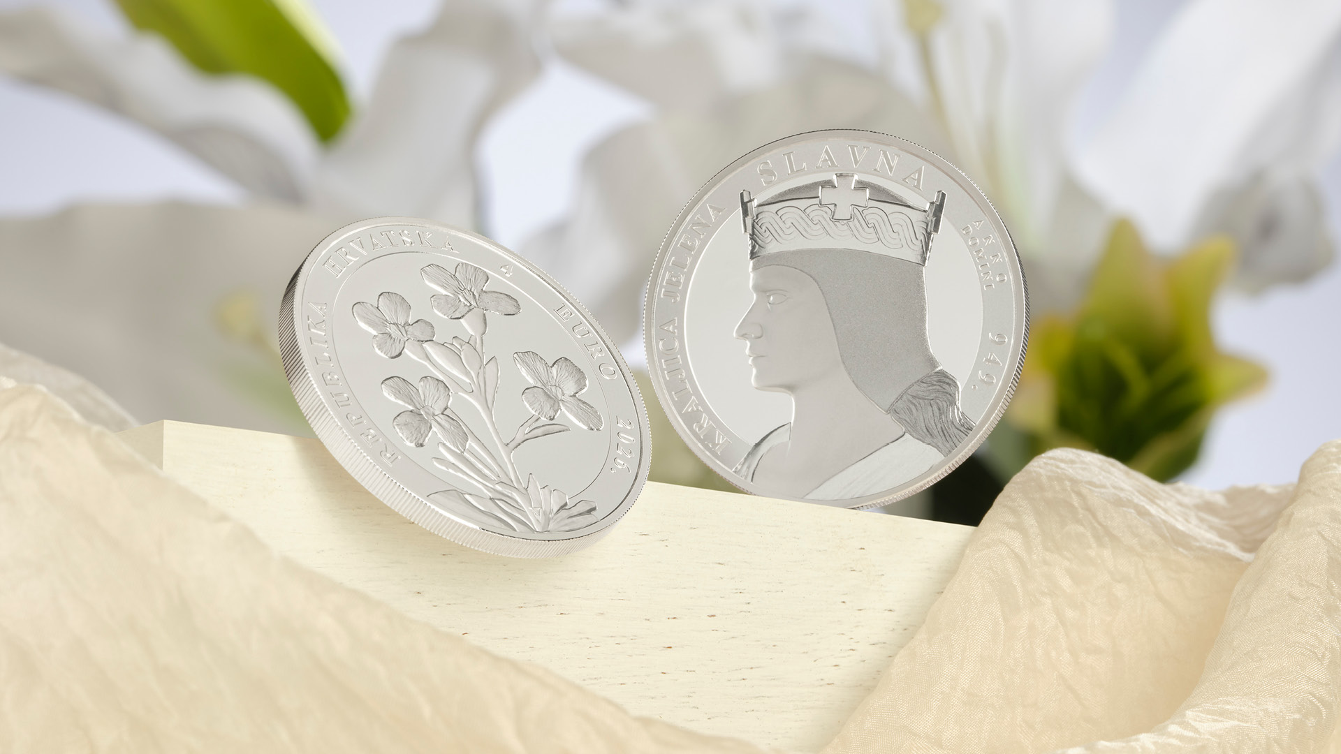The Croatian National Bank has issued "Queen Jelena the Glorious" gold and silver collector coins as part of the Croatian Rulers series of collector coins with commemorative motifs featuring Queen Jelena the Glorious, who had a significant influence on political, cultural and social developments in the Croatian history and is part of the historical and political heritage of the Republic of Croatia. The gold collector coins are issued in the 100, 25 and 10 euro denominations and the silver collector coins are issued in the 6 and 4 euro denominations. The issue of the 6 euro silver collector coin is gilded.