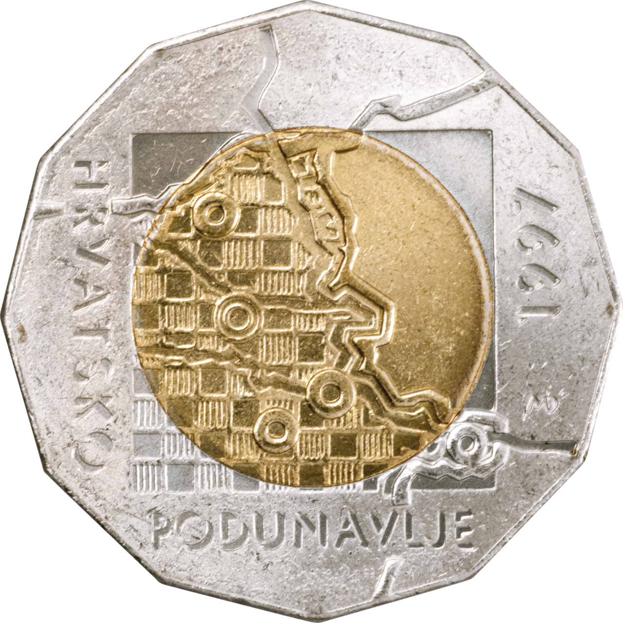 Motiv na licu: Na plohi kovanog novca prikaz je zemljopisne karte Hrvatskog podunavlja s oznakama hrvatskih gradova i rijeka, te ucrtanim granicama Republike Hrvatske i susjednih država. Podlogu zemljopisne karte čini površina kvadratnog oblika, koja je unutar granica Republike Hrvatske protkana kvadratićima, simbolom države Hrvatske. Uz lijevu stranicu kvadratne podloge započinje, te se nastavlja uz donju stranicu, natpis "HRVATSKO PODUNAVLJE". Uz desnu stranicu kvadratne podloge označena je godina kovanja "1997.".
