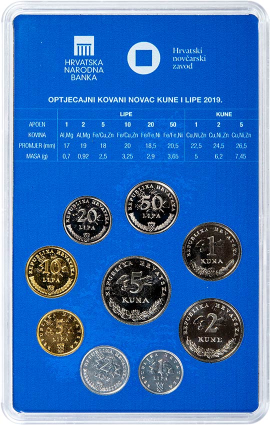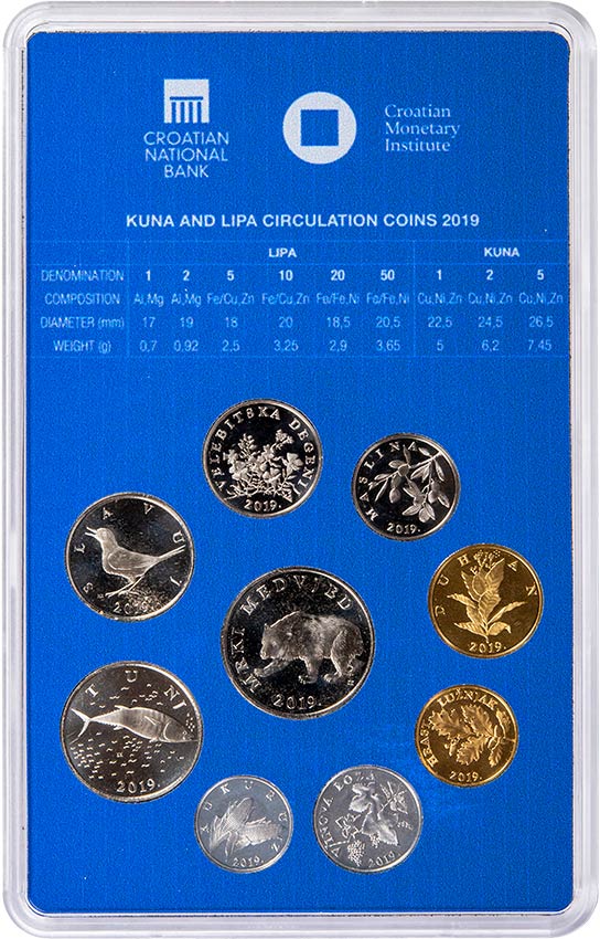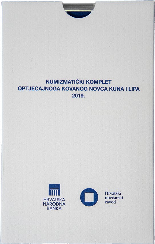 Hrvatska narodna banka izdala je numizmatički komplet optjecajnoga kovanog novca Republike Hrvatske, kuna i lipa, s godinom kovanja 2019. Odluka o izdavanju numizmatičkih kompleta optjecajnoga kovanog novca Republike Hrvatske, kuna i lipa, s oznakom godine kovanja 2019. objavljena je u "Narodnim novinama", br. 101/2019.