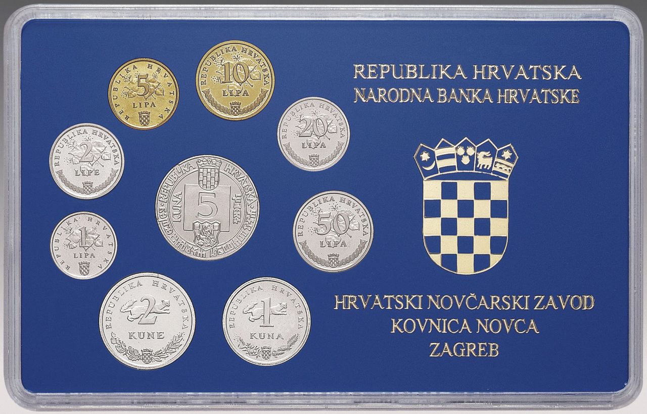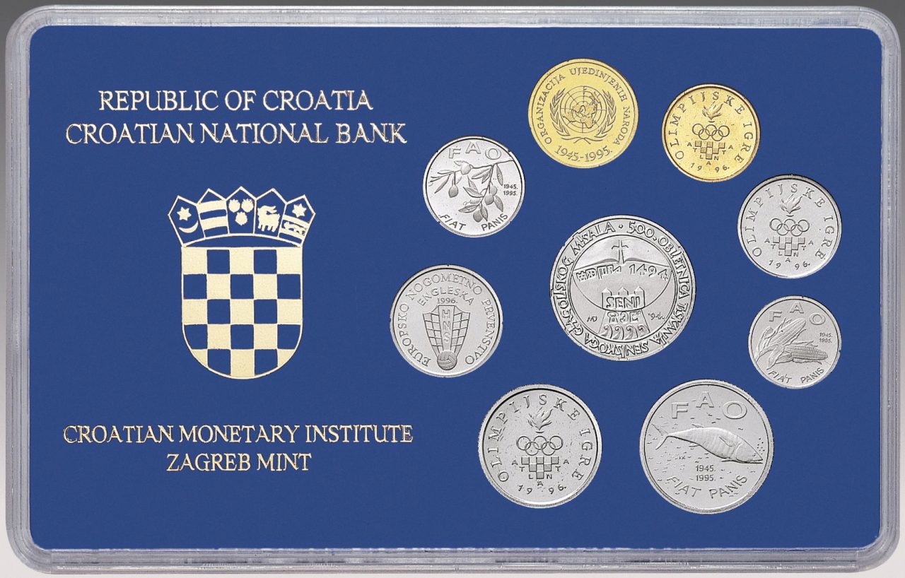 U razdoblju 1994. – 1996. Hrvatska narodna banka pustila je u optjecaj pet različitih izdanja prigodnoga optjecajnoga kovanog novca, koja su obuhvatila devet vrijedećih apoena. Tih devet apoena uvršteno je u numizmatički komplet.
