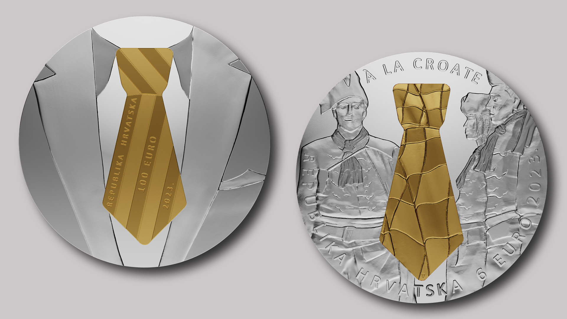 Hrvatska narodna banka izdala je zlatnu i srebrnu numizmatičku kovanicu s osnovnim motivom konturne kravate, prepoznatljivoga i znamenitoga kulturološkog motiva u popularnoj povijesti Republike Hrvatske. Zlatnu numizmatičku kovanicu izdaje u apoenu od 100 eura, a srebrnu numizmatičku kovanicu u apoenu od 6 eura.