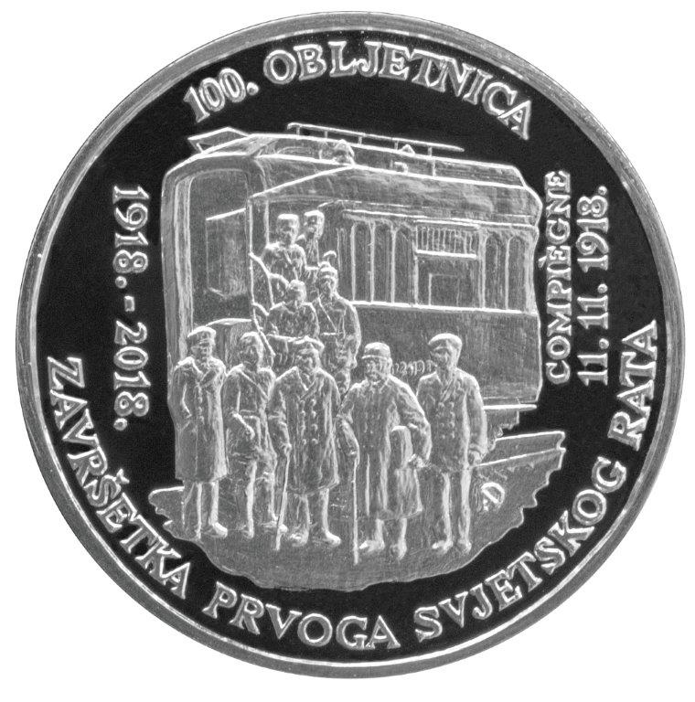 Hrvatska narodna banka izdala je prigodni srebrni kovani novac u povodu 100. obljetnice završetka Prvoga svjetskog rata (1918. – 2018.), povijesnog događaja značajnog za Republiku Hrvatsku i svijet.