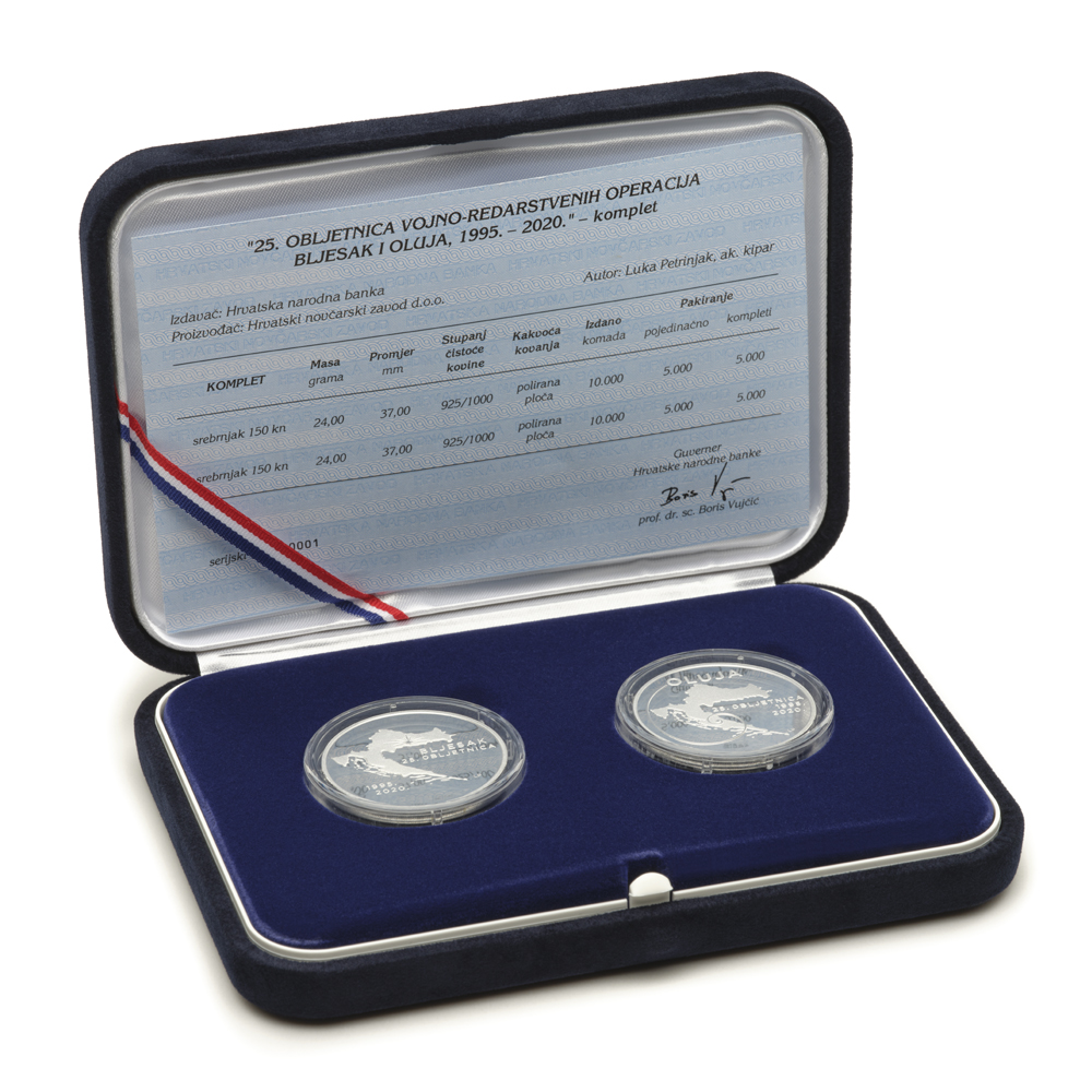 Hrvatska narodna banka izdala je komplet "25. OBLJETNICA VOJNO-REDARSTVENIH OPERACIJA BLJESAK I OLUJA, 1995. – 2020."