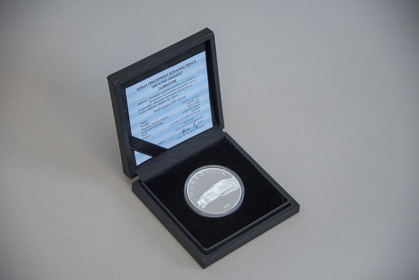 Odluka o izdavanju i prodaji prigodnoga srebrnoga kovanog novca "Dubrovnik" objavljena je u "Narodnim novinama", br. 56/2018.